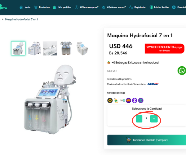 Una vez seleccionado el producto colocamos la cantidad de productos que queremos